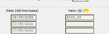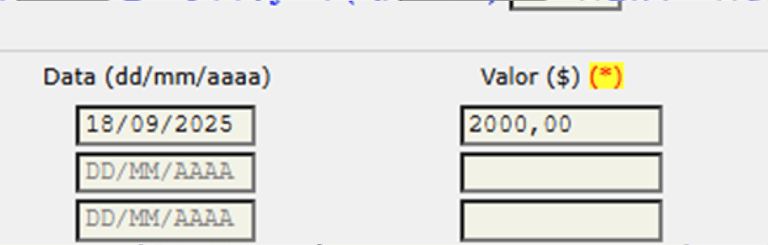 - Valor* → Informe o valor atualizado da parcela (calculado no início do tutorial).