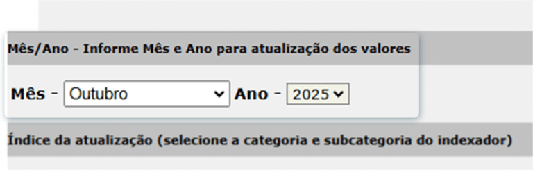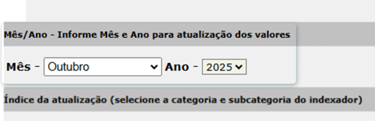 3º Passo: Altere para o mês vigente que deseja atualizar. (No exemplo, utilizaremos o mês de outubro de 2025).