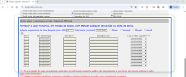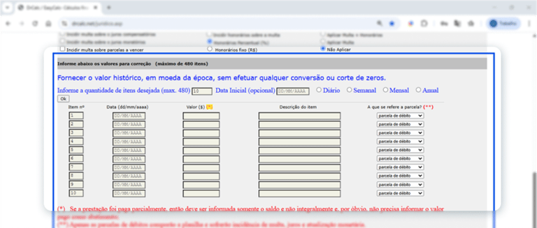 5º Passo: Após selecionar o índice, desça a página até o campo “Informe abaixo os valores para correção (máximo de 480 itens)”.