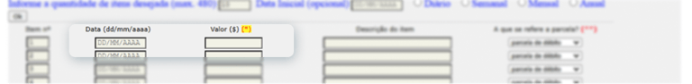 6º Passo: Utilize apenas a parte referente às datas e valores, desconsiderando o texto em azul.